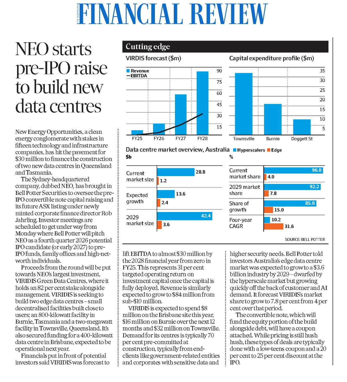 These skills make him ideally suited to working with VIRDIS DC to build a robust client base in the industrial, infrastructure, and defence sectors, while also establishing a network of data centres across Australia.